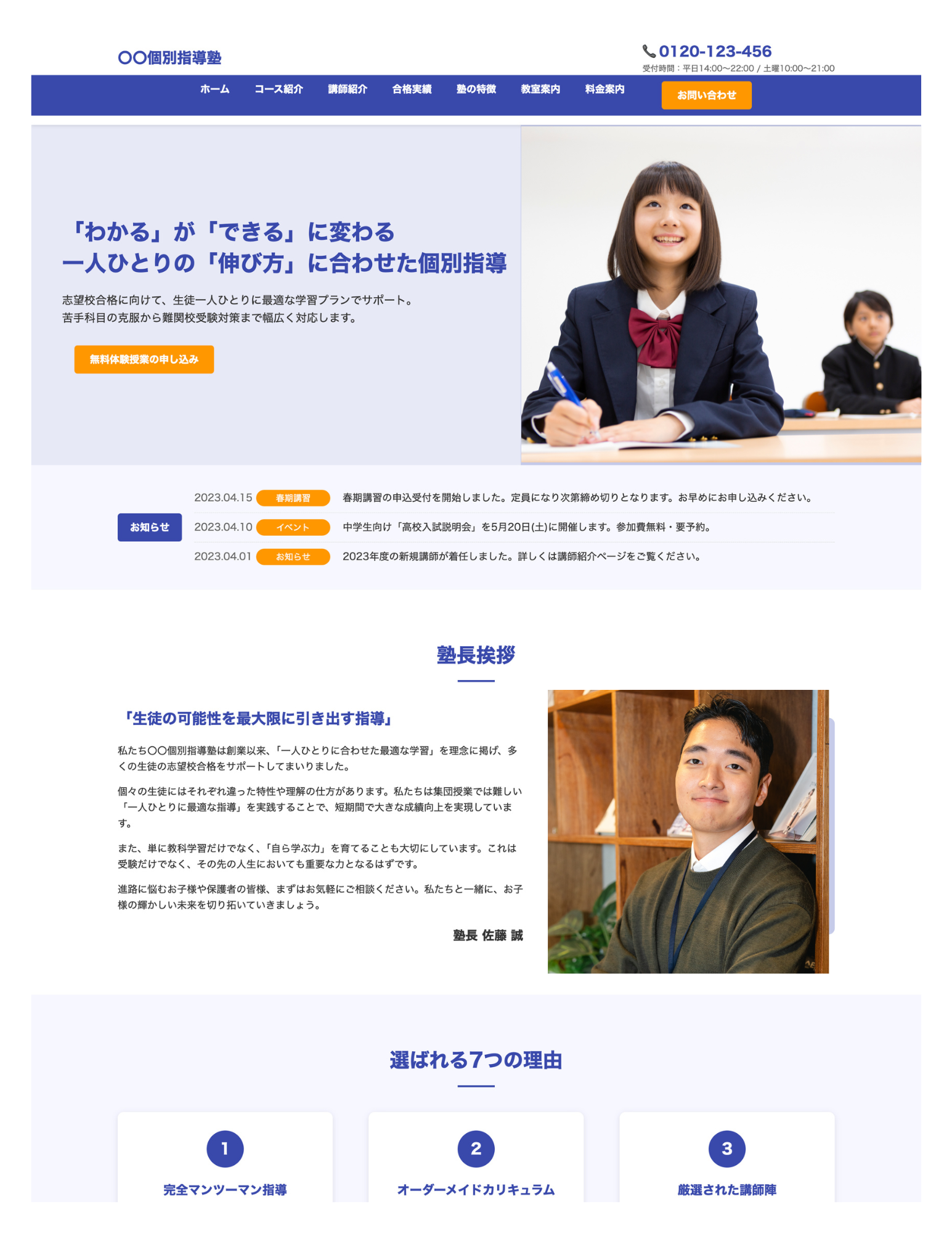 なぜなら、このテンプレートは、実際に成果を出した「選ばれるホームページ」の型を、5つの業種別(歯科医院、クリニック、士業、工務店、学習塾など)に最適化して、そのまま使える形にまとめたものだからです。